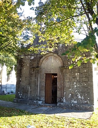 Con motivo de la elaboración de este artículo me desplacé hasta Soutomandrás, en donde me encontré con una pequeña iglesia parroquial muy bien cuidada, separada un centenar de metros del núcleo urbano. La antigua Rectoral, lugar donde hace más de 100 años tuvo lugar el “opíparo banquete”, se encuentra al lado de la iglesia y hoy en día no son más que cuatro paredes cubiertas por la maleza. A la entrada de la puerta principal de la iglesia y, por tanto, de paso obligado para acceder y salir de ella, se encuentra la sepultura de don Adolfo Outumuro Seara, el “tío vello”.