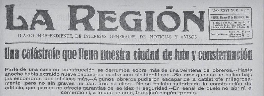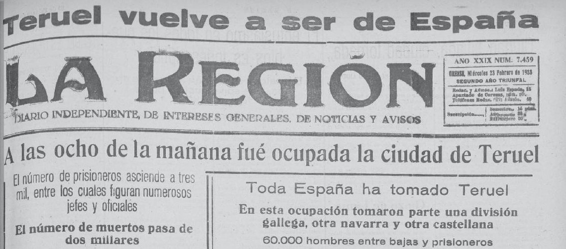 “En marzo de 1937 nos atraparon los mercenarios de Falange y llevaron a la cárcel de Orense, entre los setecientos y pico de presos políticos que allí había hacinados, durmiendo incluso en el patio interior de la prisión, sin cama en que acostarse ni ropa con que cubrir los maltrechos cuerpos, víctimas de los más inhumanos apaleamientos, teniendo como único techo el helado firmamento” (Garrido, 1941b; tomado de Freire Freire, 2001).