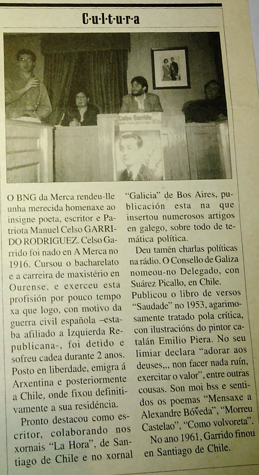 En una de las estrofas de su poema “¡Saúde, hirmáns!”, Manuel Celso clama a la galleguidad, pidiendo a los acomplejados que se aparten: