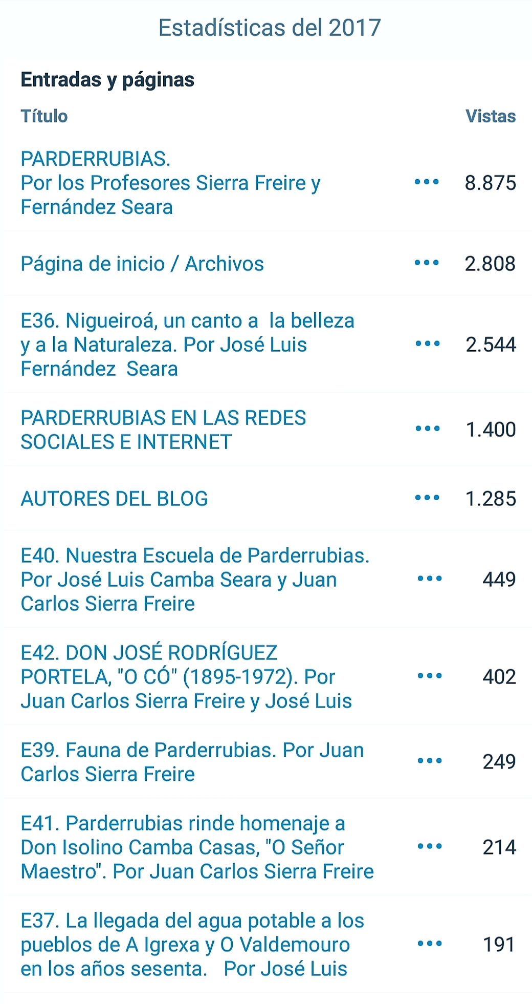 Se recibieron 8.979 visitas de 5.228 visitantes (un 27% más que el año anterior) de un total de 54 países. A continuación aparecen las páginas y entradas más visitadas, y los países que más visitas aportaron.