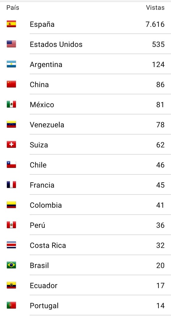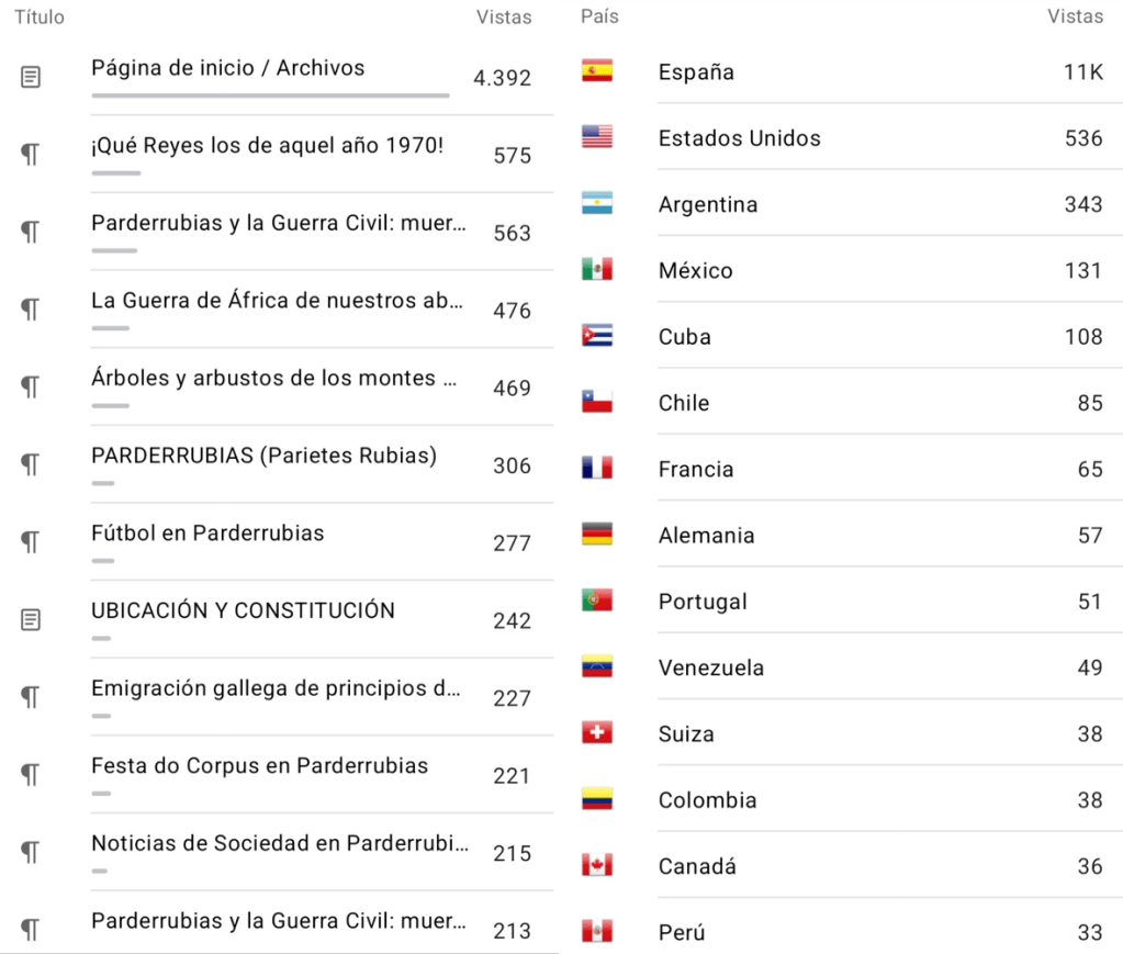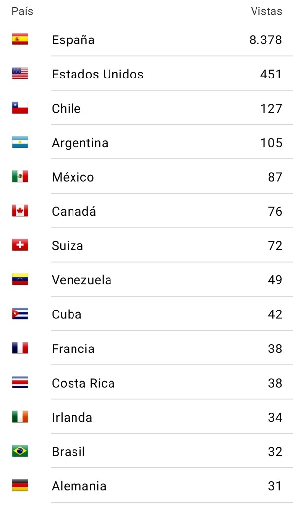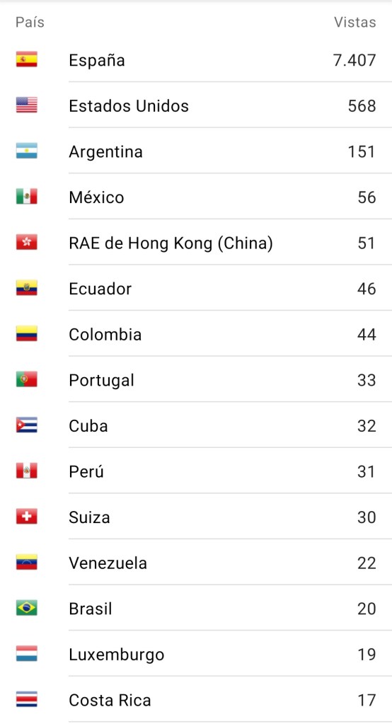 Se recibieron 12.406 visitas de 3.610 visitantes de un total de 50 países. A continuación aparecen las páginas y entradas más visitadas, y los países que más visitas aportaron.